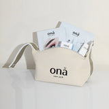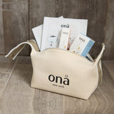Designed to be more than just your regular makeup bag, this stylishly structured travel pouch has a place for everything, from your favorite Ona essentials to AirPods and a lip balm.